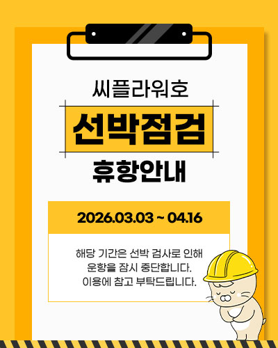 우천시에도 여객선이 출항하는 경우가 있으며 기상에 따른 결항시에는 고객님들께 문자 또는 전화연락을 드려 취소안내 진행해드립니다. 온라인예약전 이용일자에 기상상황을 확인후 사전예약 진행 부탁드립니다.